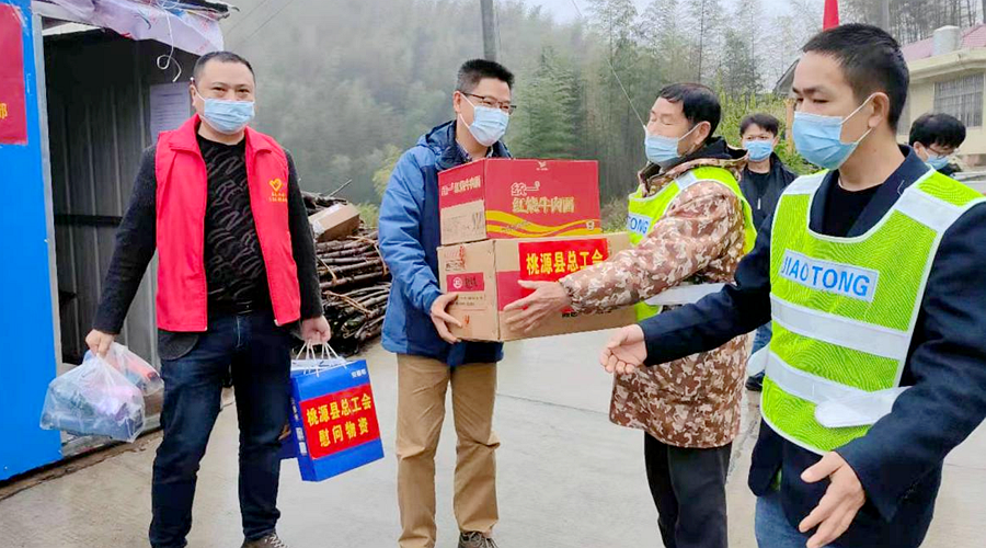 为切实发挥职工“娘家人”的作用,持续做好关爱慰问防疫一线职工的保障服务工作,3月26日,桃源县总工会党组书记、副主席张俊带领县总工会机关干部前往夷望溪镇简家溪村、牛车河镇丁家坪村、大庄坪村、三红村等与外市交界村疫情防控值班点,看望慰问奋战在抗疫一线的干部职工,为他们送去方便面、饮用水、牛奶、雨伞等抗疫物资和慰问品,及时把县委政府和工会组织的温暖送到抗疫一线职工的心坎上。